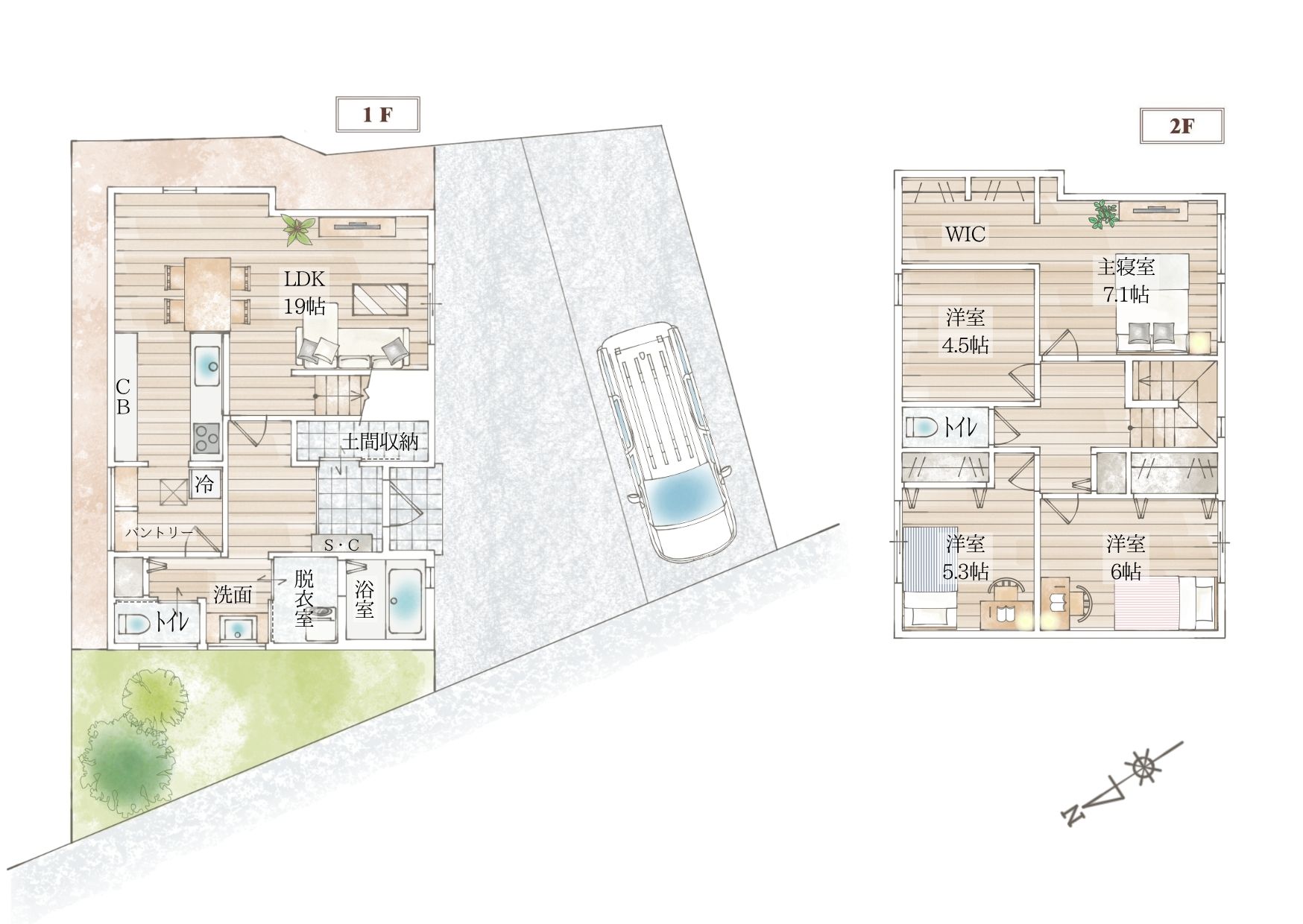 1家族で車2台所有が当たり前の今、駐車スペースは余裕を持って停められるようにしています。