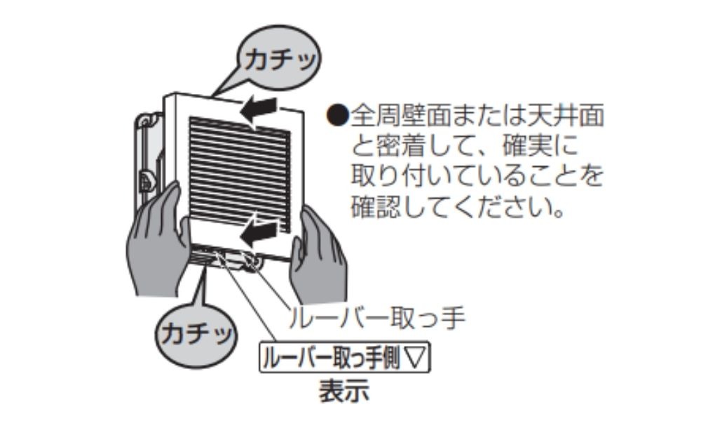 “ルーバー取っ手側” という表示があるので、それを下向きに。